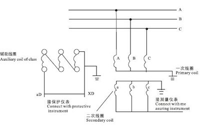 電壓互感器實際上是一個帶鐵心的變壓器。它主要由一、二次線圈、鐵心和絕緣組成。在3~60KV電網中,通常采用三只單相三繞組電壓互感器或者一只三相五柱式電壓互感器的接線形式。必須指出,不能用三相三柱式電壓互感器做這種測量。當系統(tǒng)發(fā)生單相接